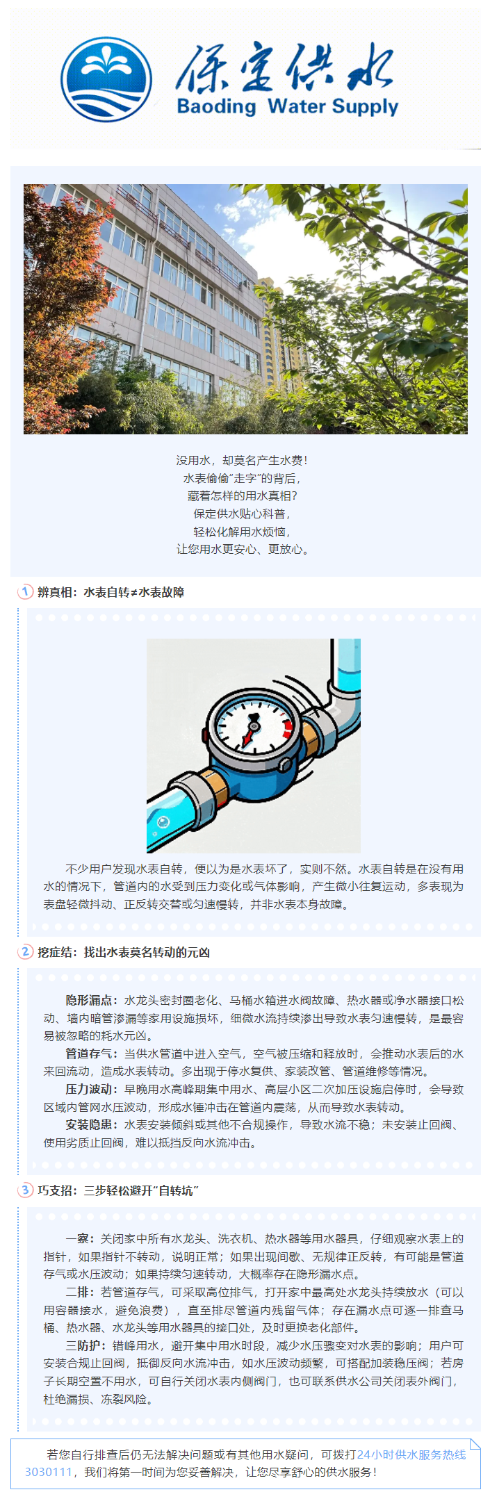 不用水也走字?保定供水教您避坑“水表自轉(zhuǎn)”