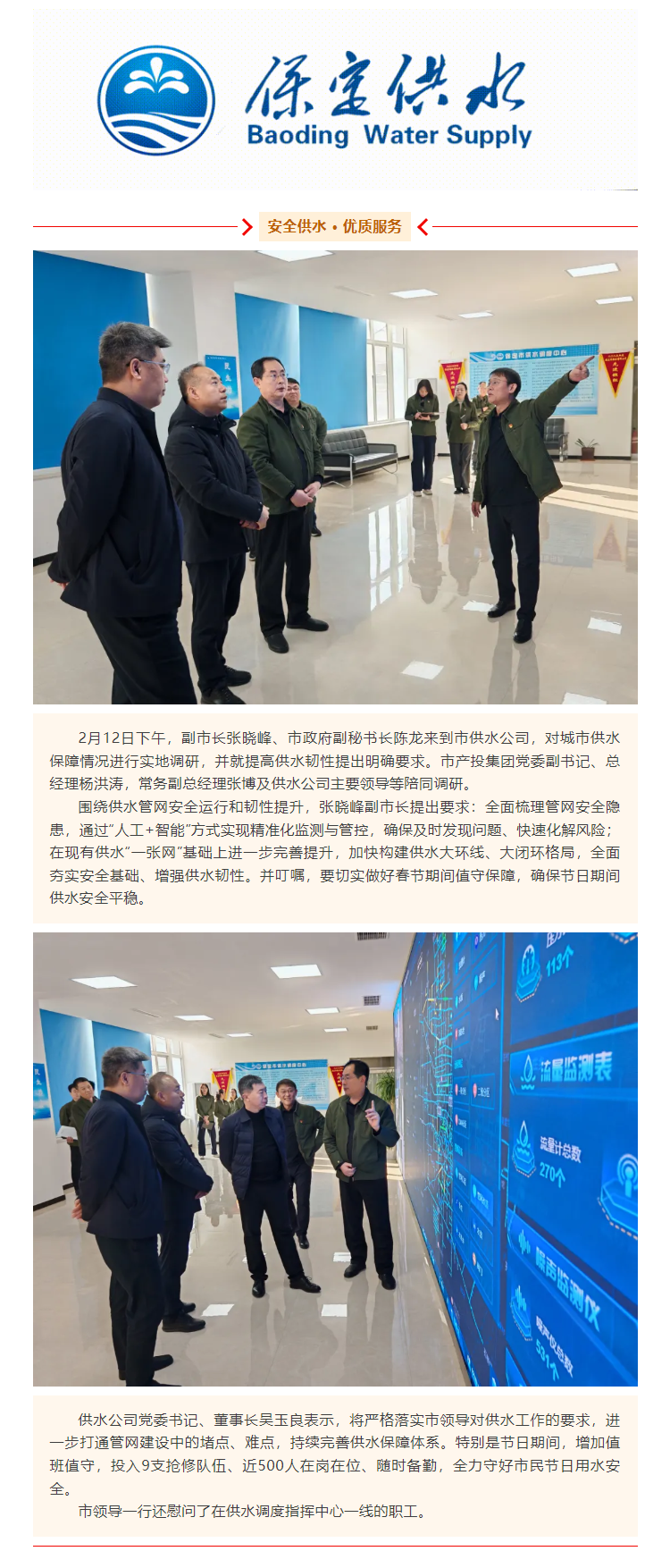 市領(lǐng)導(dǎo)到供水公司調(diào)研城市供水保障工作