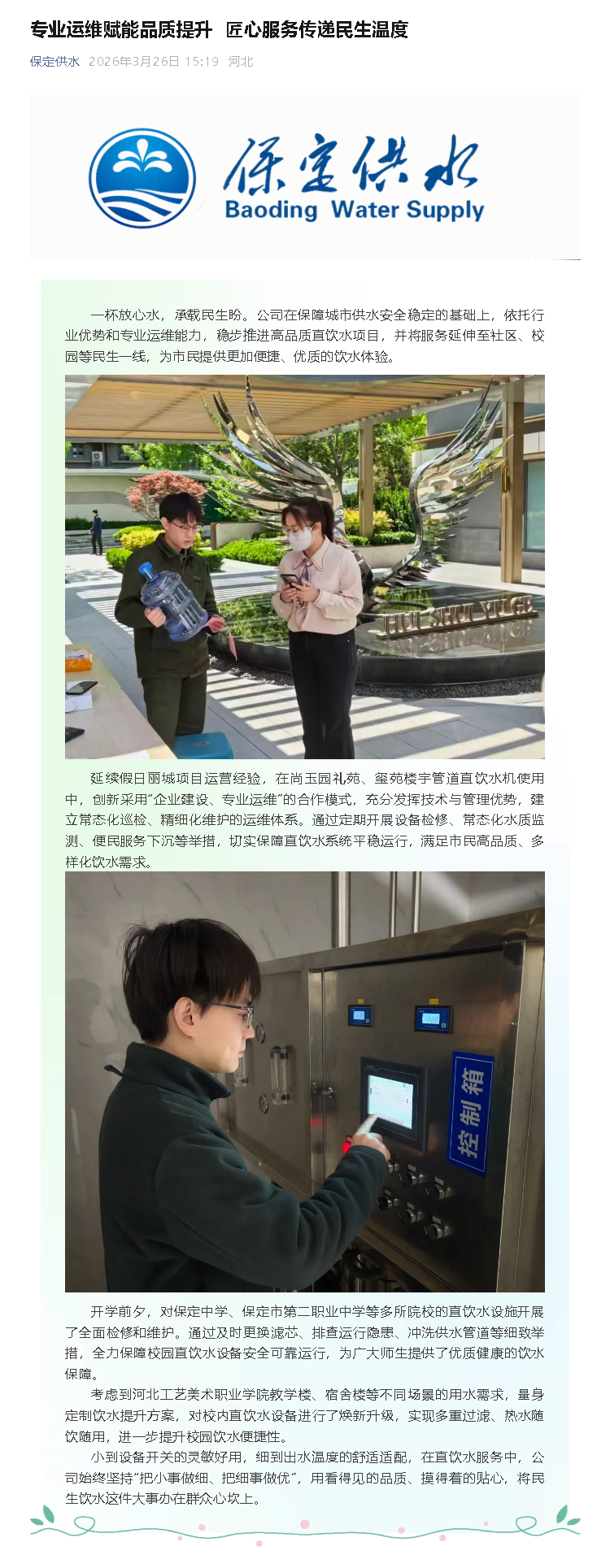 專業(yè)運(yùn)維賦能品質(zhì)提升 匠心服務(wù)傳遞民生溫度