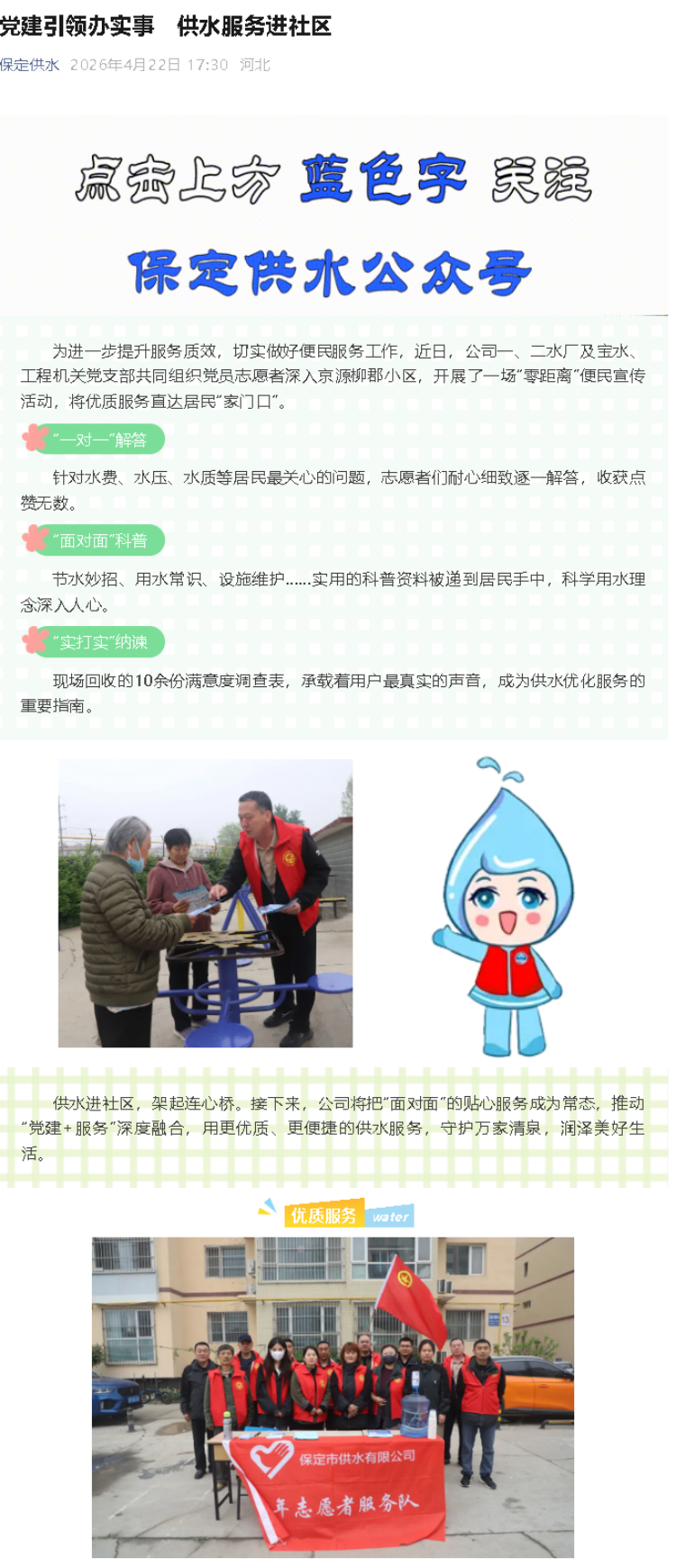 黨建引領辦實事 供水服務進社區(qū)